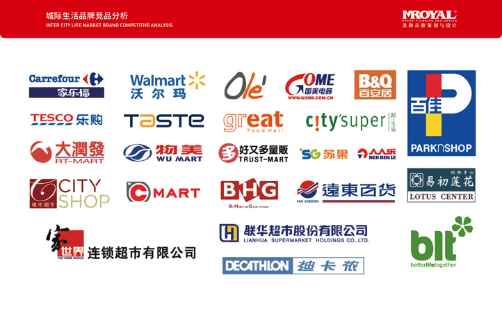 美御品牌策劃設(shè)計(jì)團(tuán)隊(duì)經(jīng)過專業(yè)的分析調(diào)研百家、city super、BHG、Ole Food Hall等同行超市后給出成際生活精準(zhǔn)的定位。