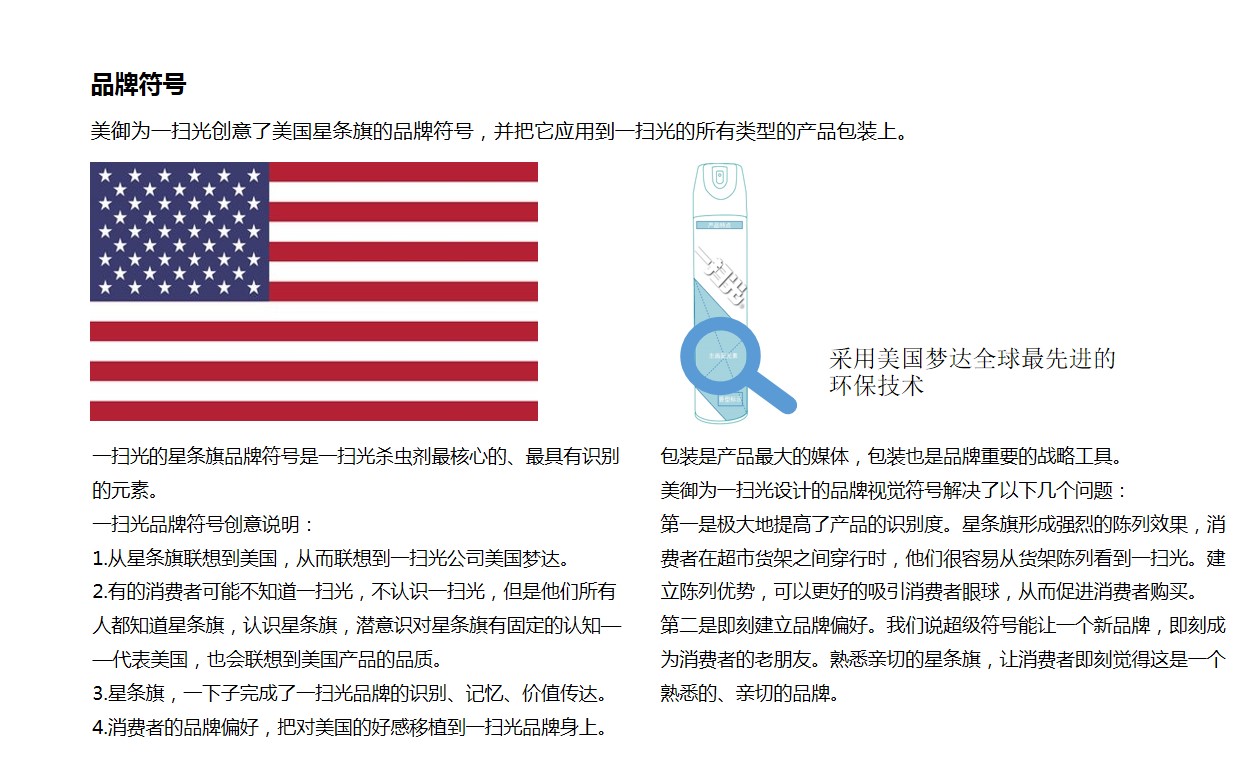 美御為一掃光殺蟲劑品牌重新制定了品牌策略,進(jìn)行了品牌戰(zhàn)略管理,制定了多品牌的品牌戰(zhàn)略,重新進(jìn)行了品牌定位,突出了品牌的品牌健康化特性,規(guī)劃了產(chǎn)品戰(zhàn)略結(jié)構(gòu),為品牌創(chuàng)建了高品質(zhì)的品牌形象、產(chǎn)品包裝設(shè)計(jì),這是美御從戰(zhàn)略高度為企業(yè)制定長遠(yuǎn)的品牌戰(zhàn)略規(guī)劃,幫助品牌實(shí)現(xiàn)可持續(xù)發(fā)展。一、品牌戰(zhàn)略管理