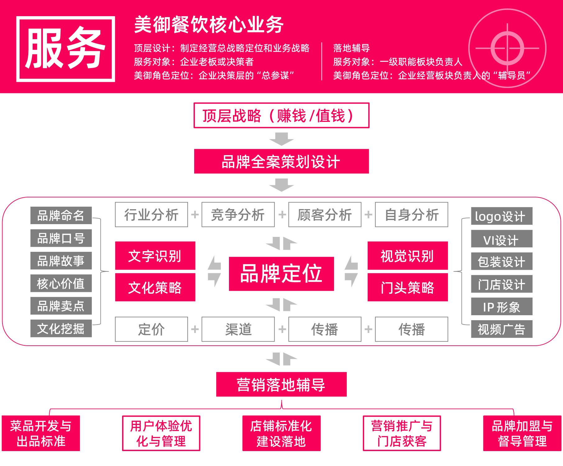 美御團(tuán)隊(duì)在餐飲行業(yè)里深耕了17年,美御用“年輕化”戰(zhàn)略服務(wù)體系為餐飲企業(yè),提供一站式品牌營(yíng)銷咨詢方案,贏得客戶一致好評(píng),我們希望客戶在充分了解美御的前提下進(jìn)行合作,所以我們根據(jù)新客戶提出的常見問題做出解答。